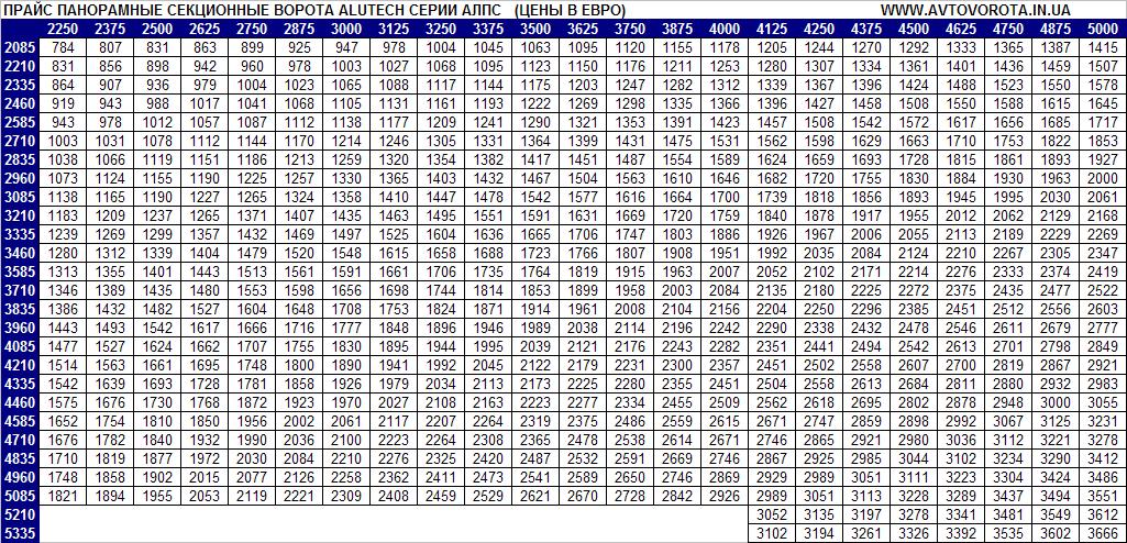 ПРАЙС ПАНОРАМНЫЕ СЕКЦИОННЫЕ ВОРОТА ALUTECH СЕРИИ АЛПС.
