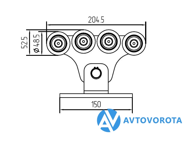 Опора роликовая малая со стальными роликами для ворот весом до 450кг.