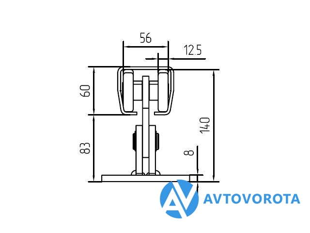 Улавливатель нижний малый для откатных ворот весом до 450кг.