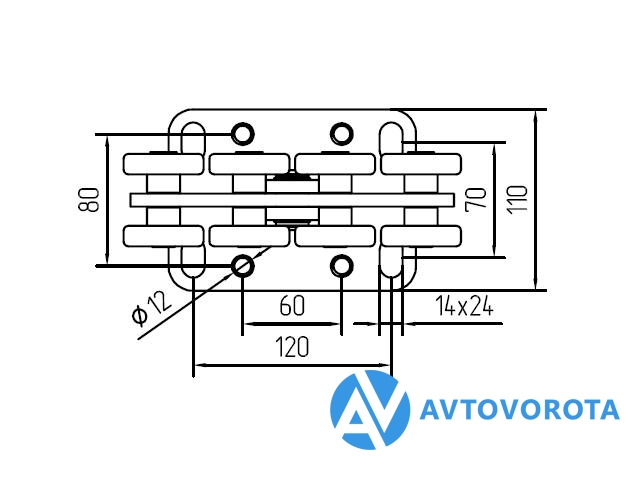 Кронштейн на 4 ролика малый для откатных ворот.
