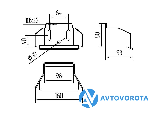 Кронштейн универсальный для крепления элементов откатных ворот.