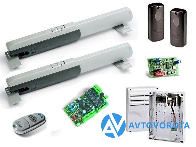 Комплект автоматики для распашных ворот весом до 1000 кг и шириной створки до 5 м со встроенными концевыми выключателями.