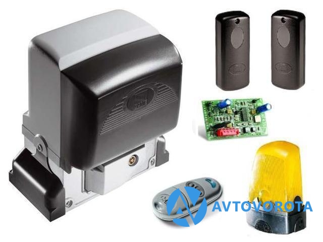 Комплект автоматики для откатных ворот весом до 800 кг с платой управления ZBX-6. (Привод, 1 пульт д/у, фотоэлементы безопасности, сигнальная лампа).