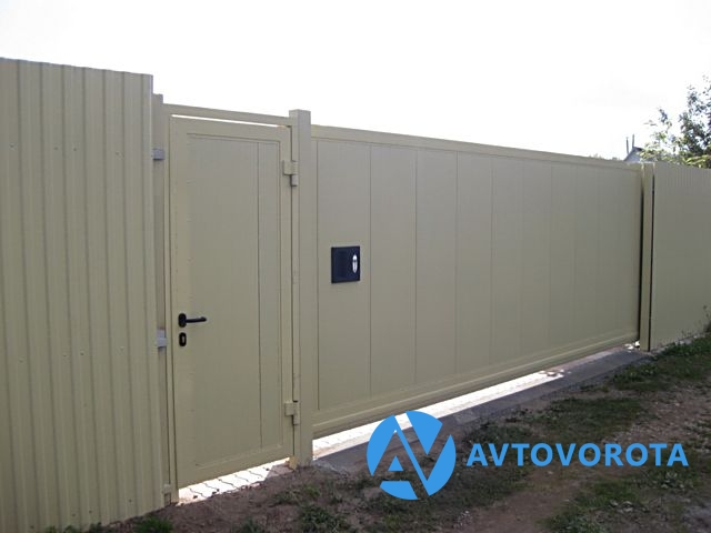 Щит калитки из сэндвич-панелей стандартного цвета, окантованный алюминиевым профилем;