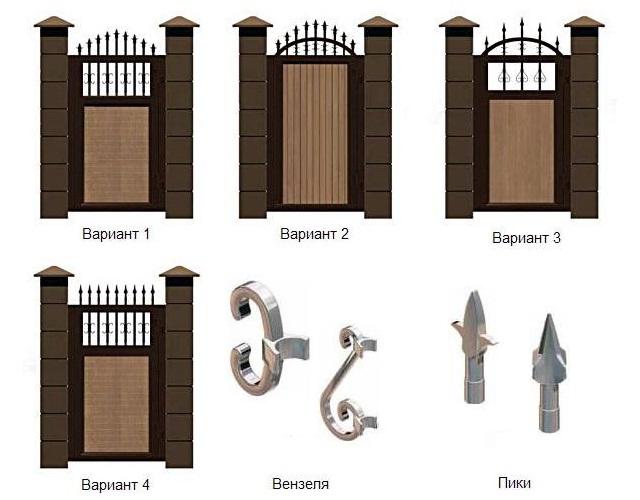3 вида заполнения щита калитки.