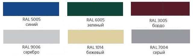 6 возможных цветов по шкале RAL с наценкой 5%. Покрытие полиэстер.