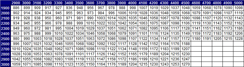 По горизонтали - ширина проема для установки ворот в миллиметрах, по вертикали - высота проема в миллиметрах.