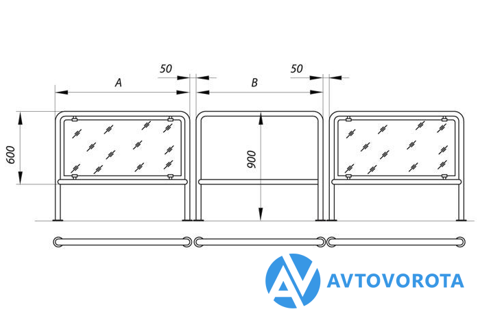 Ограждение стационарное без стекла, подъемно-поворотное (съемное) без стекла, стационарное со стеклом, подъемно-поворотное (съемное) со стеклом
