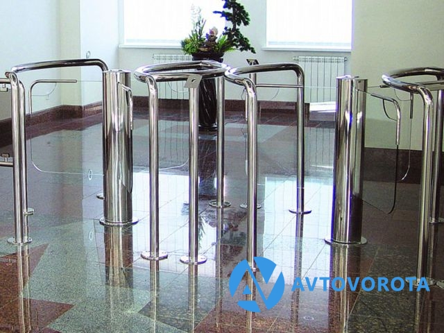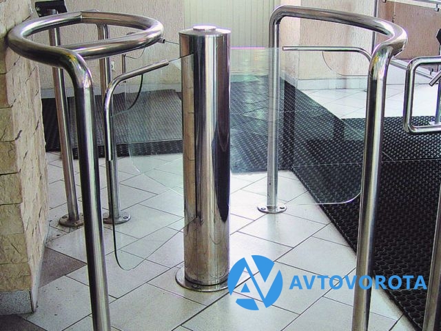 Турникет роторный сервоприводный, лопасти из прозрачного стекла, встроенный блок управления, нержавеющая сталь